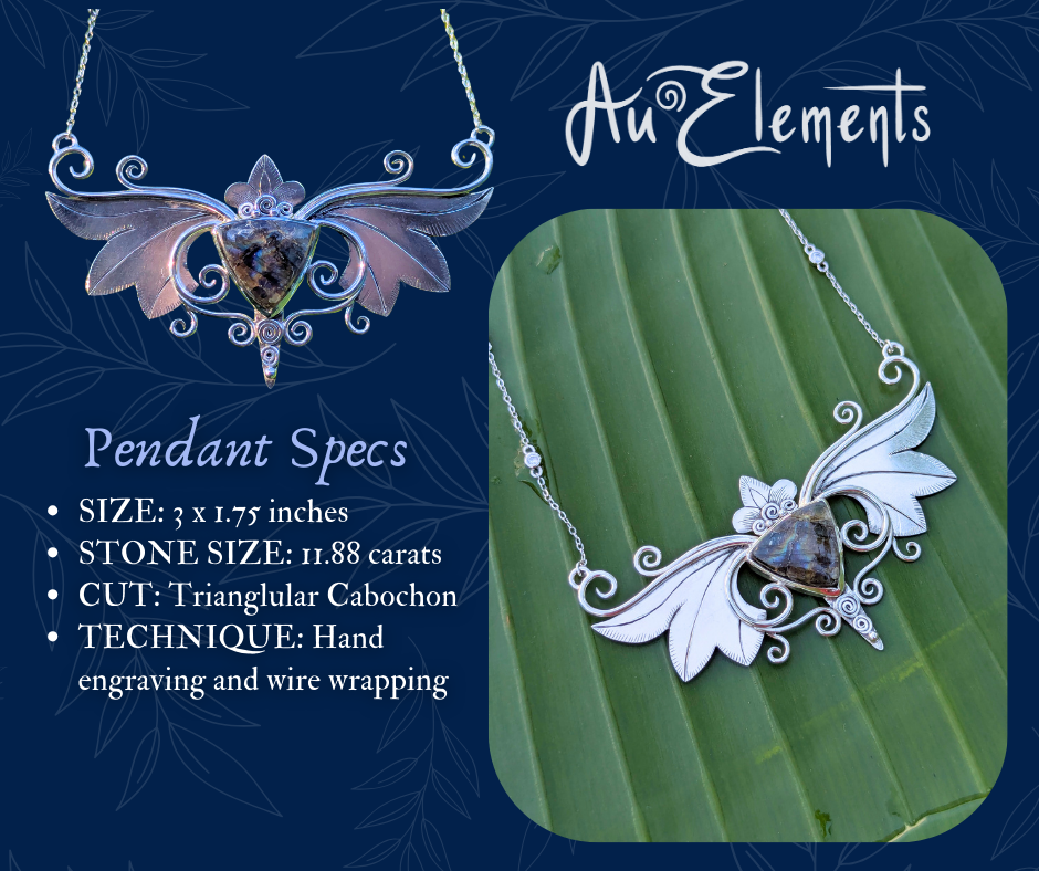 This Art Nouveau inspired choker was entirely hand fabricated from sterling silver and features a labradorite cabochon and a CZ studded chain.